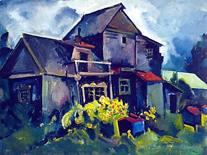 Ti offriamo una riproduzione artigianale su tela dell'opera famosa 'Casa di campagna. Village Zyuzino' di Aristarkh Lentulov, dal Museo delle Riproduzioni.