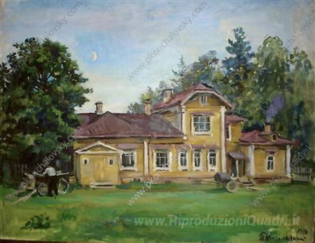 Ti offriamo una riproduzione artigianale su tela dell'opera famosa 'Casa in Manopole' di Pyotr Konchalovsky, dal Museo delle Riproduzioni.