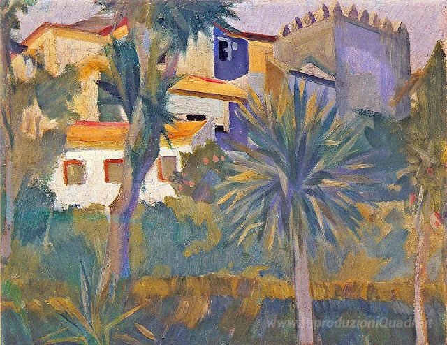 Ti offriamo una riproduzione artigianale su tela dell'opera famosa 'Casa Manhufe' di Amadeo de Souza-Cardoso, dal Museo delle Riproduzioni.