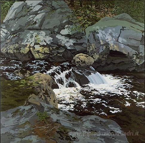 Ti offriamo una riproduzione artigianale su tela dell'opera famosa 'Cascata' di Neil Welliver, dal Museo delle Riproduzioni.