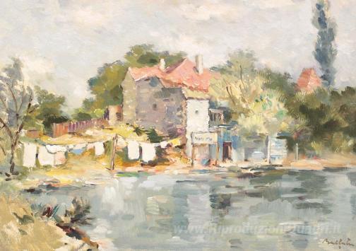 Ti offriamo una riproduzione artigianale su tela dell'opera famosa 'Case in Bretania' di Adam Baltatu, dal Museo delle Riproduzioni.