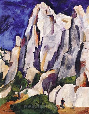 Ti offriamo una riproduzione artigianale su tela dell'opera famosa 'Cassis. Scogliere.' di Pyotr Konchalovsky, dal Museo delle Riproduzioni.