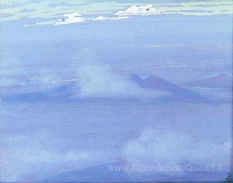 Ti offriamo una riproduzione artigianale su tela dell'opera famosa 'Castelli di re Gesar' di Nicholas Roerich, dal Museo delle Riproduzioni.