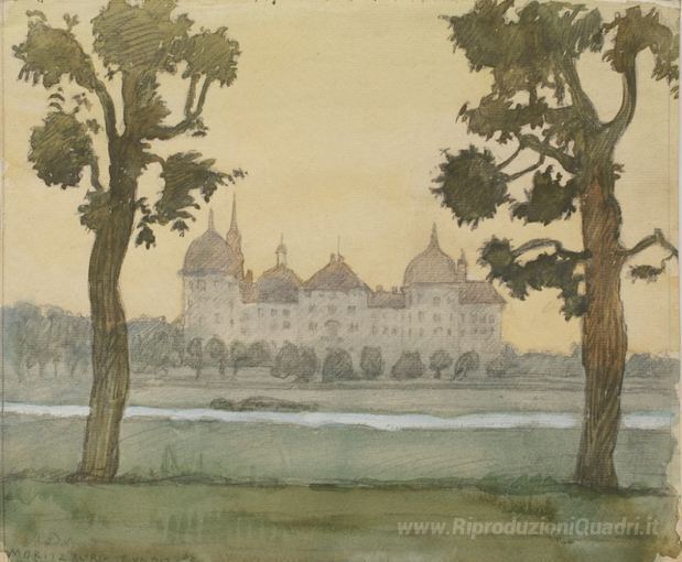 Ti offriamo una riproduzione artigianale su tela dell'opera famosa 'Castello di Moritzburg' di Mstislav Dobuzhinsky, dal Museo delle Riproduzioni.