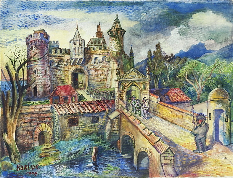 Ti offriamo una riproduzione artigianale su tela dell'opera famosa 'Castello inglese' di David Burliuk, dal Museo delle Riproduzioni.