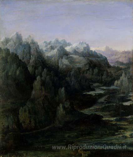 Ti offriamo una riproduzione artigianale su tela dell'opera famosa 'Catena montuosa' di Albrecht Altdorfer, dal Museo delle Riproduzioni.