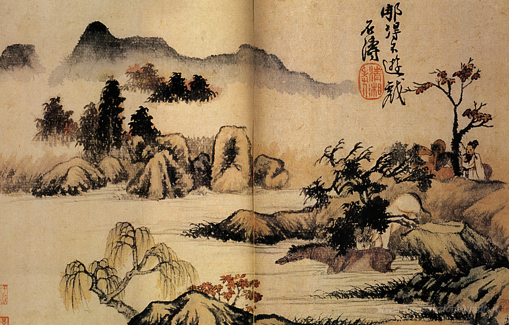 Ti offriamo una riproduzione artigianale su tela dell'opera famosa 'Cavalli Bath' di Shitao, dal Museo delle Riproduzioni.
