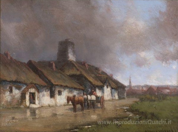 Ogni pennellata è scelta con cura, unendo tradizione e innovazione tecnica per trasmettere un'atmosfera di tranquillità e contemplazione. L'opera non solo arricchisce l'ambiente, ma invita anche a una riflessione profonda sulla relazione tra uomo e natura. Aggiungere Cavallo e carrello Con Cottage sotto il cielo tempestoso alla vostra collezione significa portare un pezzo di arte autentica, capace di trasformare e di elevare lo spirito della vostra casa.