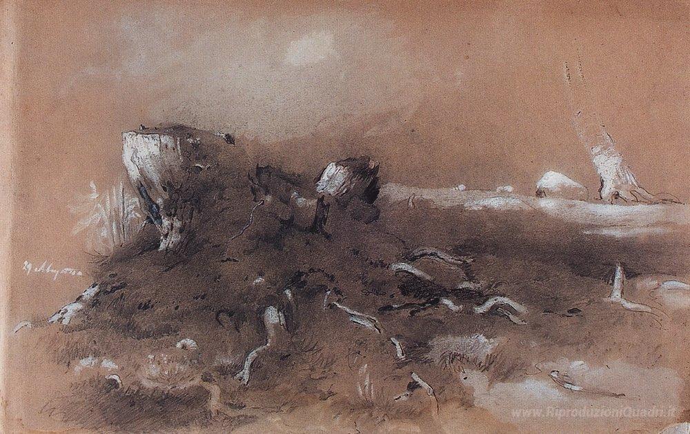 Ti offriamo una riproduzione artigianale su tela dell'opera famosa 'Ceppi' di Aleksey Savrasov, dal Museo delle Riproduzioni.