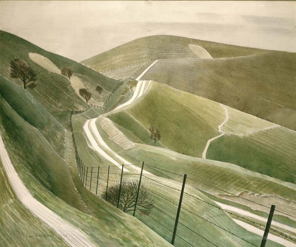 Ti offriamo una riproduzione artigianale su tela dell'opera famosa 'Chalk Percorsi' di Eric Ravilious, dal Museo delle Riproduzioni.