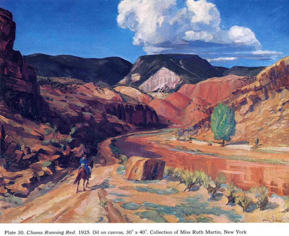 Ti offriamo una riproduzione artigianale su tela dell'opera famosa 'Chama eseguono Red' di John French Sloan, dal Museo delle Riproduzioni.