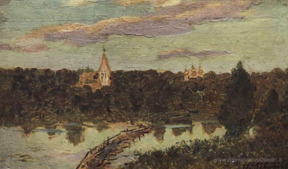 Ti offriamo una riproduzione artigianale su tela dell'opera famosa 'Chiostro tranquillo' di Isaac Levitan, dal Museo delle Riproduzioni.