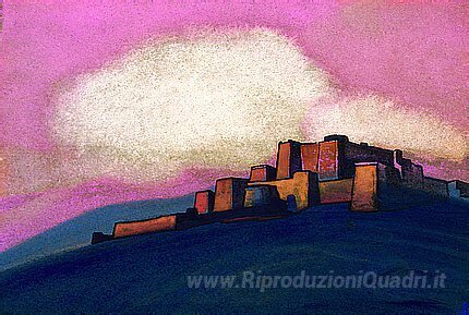 Ti offriamo una riproduzione artigianale su tela dell'opera famosa 'Cielo rosa' di Nicholas Roerich, dal Museo delle Riproduzioni.