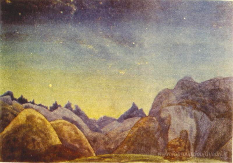 Ti offriamo una riproduzione artigianale su tela dell'opera famosa 'Cielo stellato' di Nicholas Roerich, dal Museo delle Riproduzioni.