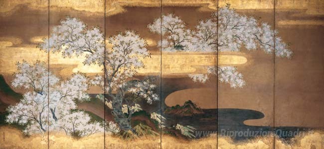 Ti offriamo una riproduzione artigianale su tela dell'opera famosa 'Ciliegi' di Tosa Mitsuoki, dal Museo delle Riproduzioni.