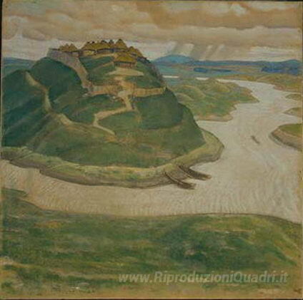 Ti offriamo una riproduzione artigianale su tela dell'opera famosa 'Città antica' di Nicholas Roerich, dal Museo delle Riproduzioni.