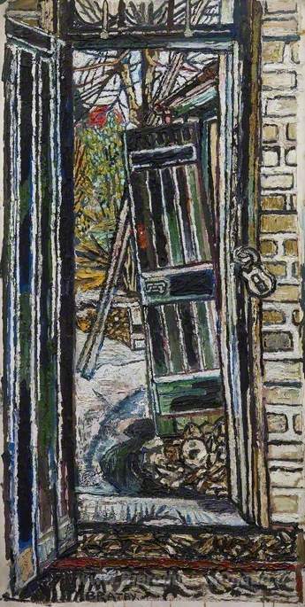 Ti offriamo una riproduzione artigianale su tela dell'opera famosa 'Coach House Door' di John Bratby, dal Museo delle Riproduzioni.