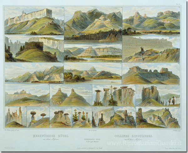 Ti offriamo una riproduzione artigianale su tela dell'opera famosa 'Colline Notevole sulla Upper Missouri, piastra 34 dal volume 2 d' di Karl Bodmer, dal Museo delle Riproduzioni.