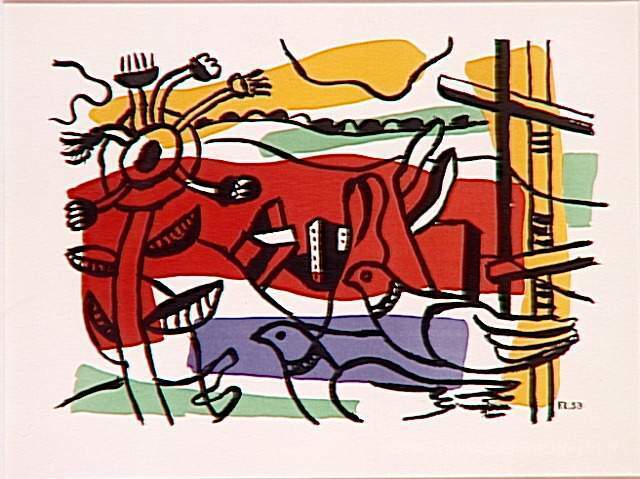 Ti offriamo una riproduzione artigianale su tela dell'opera famosa 'Composizione in due uccelli (Paesaggio con uccelli)' di Fernand Leger, dal Museo delle Riproduzioni.