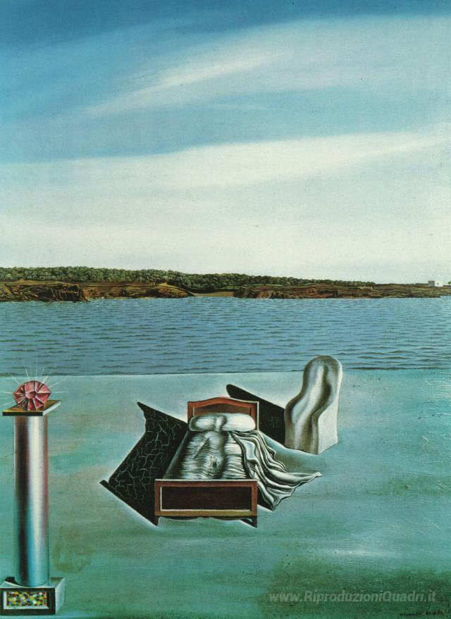 Ti offriamo una riproduzione artigianale su tela dell'opera famosa 'Composizione surrealista con figure invisibili' di Salvador Dali, dal Museo delle Riproduzioni.