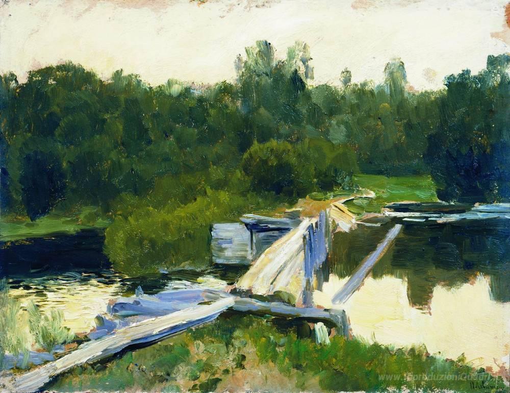 Ti offriamo una riproduzione artigianale su tela dell'opera famosa 'Con l'idromassaggio' di Isaac Levitan, dal Museo delle Riproduzioni.