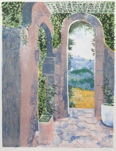 Ti offriamo una riproduzione artigianale su tela dell'opera famosa 'Corfu' di Patrick Procktor, dal Museo delle Riproduzioni.