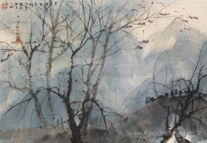 Ti offriamo una riproduzione artigianale su tela dell'opera famosa 'Corvi in ??un Willow' di Fu Baoshi, dal Museo delle Riproduzioni.