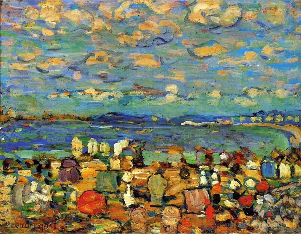 Ti offriamo una riproduzione artigianale su tela dell'opera famosa 'Crescent Beach (noto anche come Crescent Beach, St. Malo)' di Maurice Prendergast, dal Museo delle Riproduzioni.