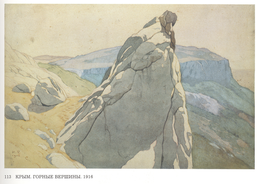 Scopri l’incanto del paesaggio attraverso l'opera Crimea. Montagne di Ivan Bilibin, un maestro dell'arte russa noto per le sue rappresentazioni vivide e ricche di atmosfera. Nato nel 1876, Bilibin ha saputo fondere la tradizione artistica con un'esplorazione personale del mondo naturale, dando vita a opere che evocano un forte senso di meraviglia e di contemplazione. La sua tecnica distintiva, caratterizzata da linee fluide e colori vibranti, rende ogni quadro non solo un artefatto visivo, ma un’esperienza sensoriale complessiva.