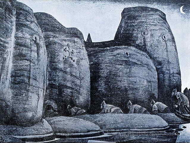 Ti offriamo una riproduzione artigianale su tela dell'opera famosa 'Cripta' di Nicholas Roerich, dal Museo delle Riproduzioni.