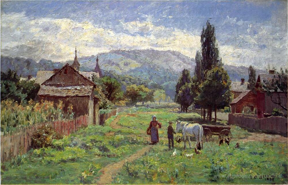 Benvenuti nel nostro esclusivo spazio dedicato ai capolavori della pittura a olio italiana. Qui, ogni dipinto racconta una storia, incarnando l'essenza e la passione dell'artista. Tra le nostre meraviglie, spicca Cumberland Mountains di T. C. Steele, un'opera che celebra la maestosità dei paesaggi naturali attraverso una palette vibrante e una tecnica raffinata, tipica dello stile impressionista. Steele, noto per la sua abilità nel catturare la luce e il movimento, dona vita a questo panorama con pennellate dinamiche che trasmettono una sensazione di calma e serenità.