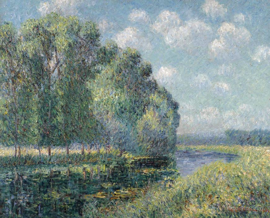 Ti offriamo una riproduzione artigianale su tela dell'opera famosa 'Dal fiume Eure in primavera' di Gustave Loiseau, dal Museo delle Riproduzioni.