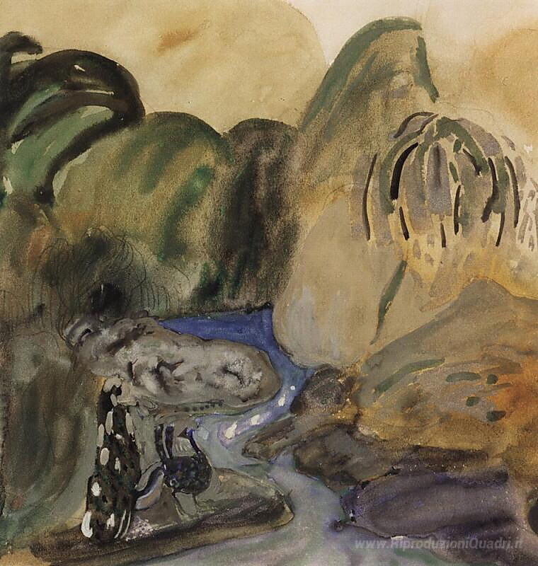 Ti offriamo una riproduzione artigianale su tela dell'opera famosa 'Dal fiume' di Martiros Saryan, dal Museo delle Riproduzioni.