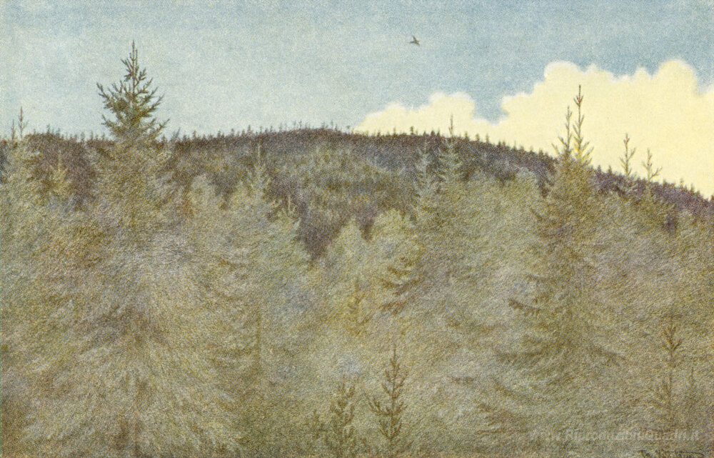 Ti offriamo una riproduzione artigianale su tela dell'opera famosa 'Der Floei En Fugl Oltre Granehei' di Theodor Severin Kittelsen, dal Museo delle Riproduzioni.