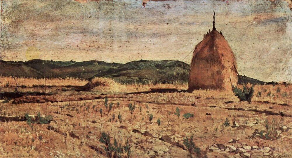 Ti offriamo una riproduzione artigianale su tela dell'opera famosa 'Der Heuhaufen' di Giovanni Fattori, dal Museo delle Riproduzioni.