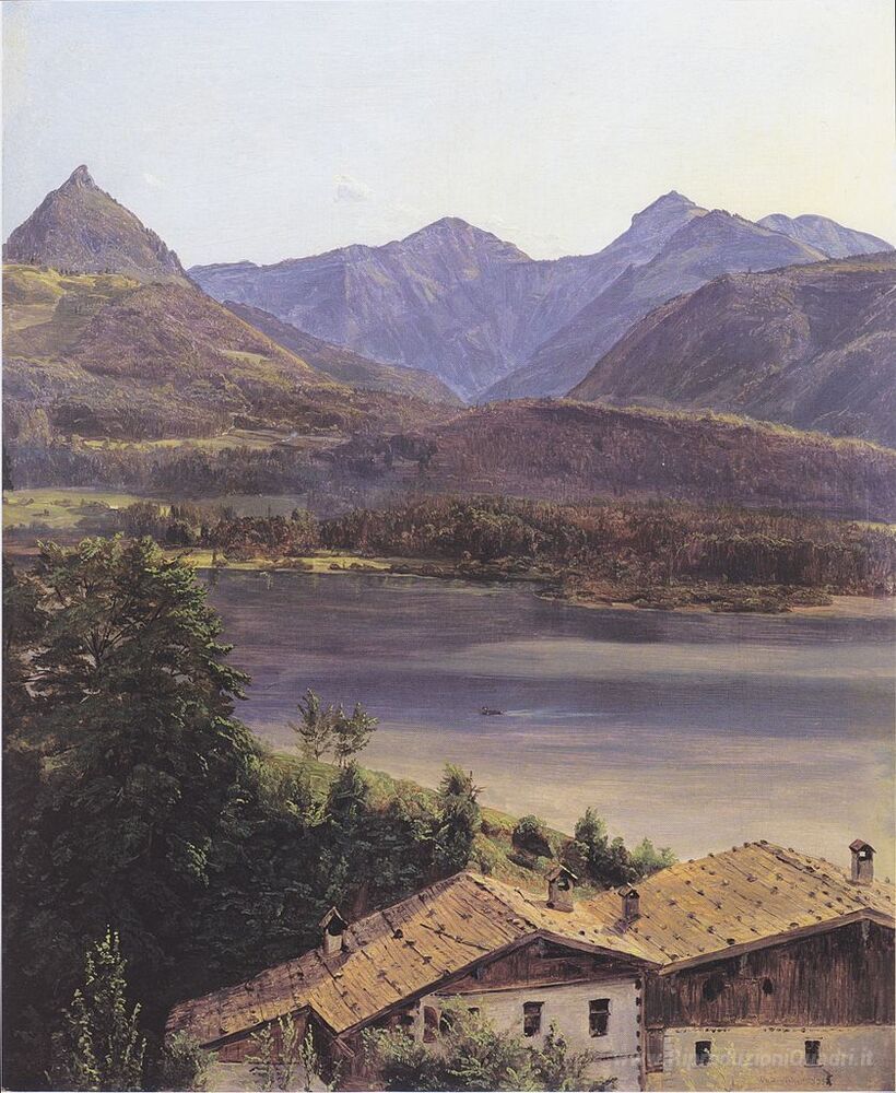 Ti offriamo una riproduzione artigianale su tela dell'opera famosa 'Der Wolfgangsee' di Ferdinand Georg Waldmüller, dal Museo delle Riproduzioni.