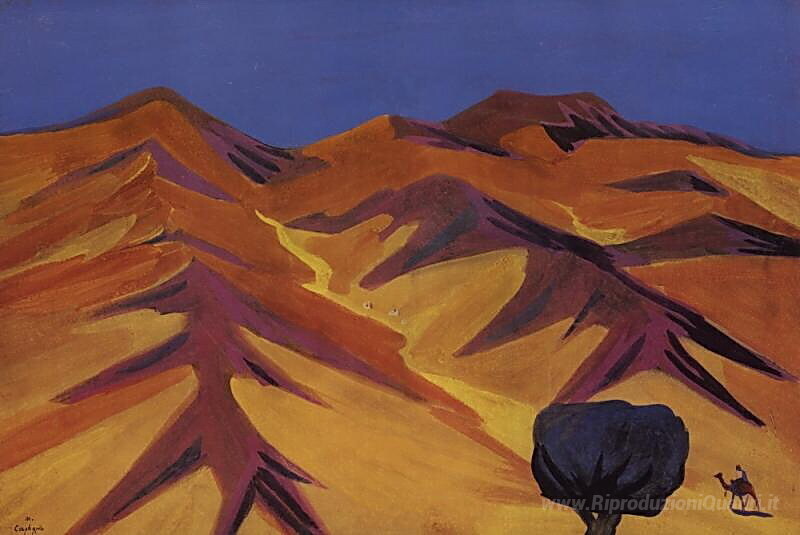 Ti offriamo una riproduzione artigianale su tela dell'opera famosa 'Deserto' di Martiros Saryan, dal Museo delle Riproduzioni.