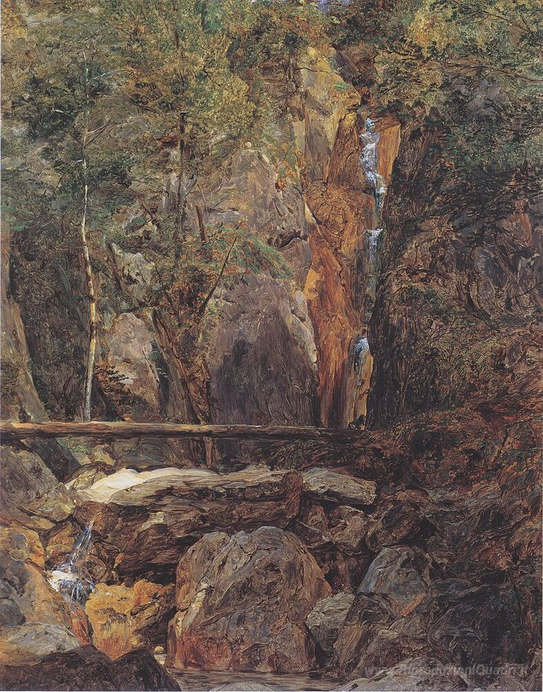 Ti offriamo una riproduzione artigianale su tela dell'opera famosa 'Deserto Rettenbach vicino Ischl (La cascata Hohenzollern in Jain' di Ferdinand Georg Waldmüller, dal Museo delle Riproduzioni.