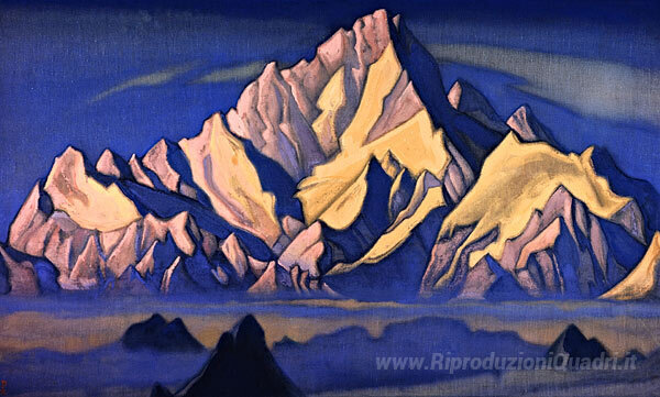 Ti offriamo una riproduzione artigianale su tela dell'opera famosa 'Dimora del re Gesar' di Nicholas Roerich, dal Museo delle Riproduzioni.
