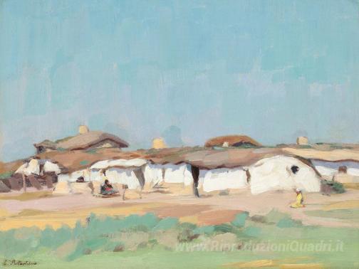 Ti offriamo una riproduzione artigianale su tela dell'opera famosa 'Dobrujan Paesaggio' di Constantin Artachino, dal Museo delle Riproduzioni.