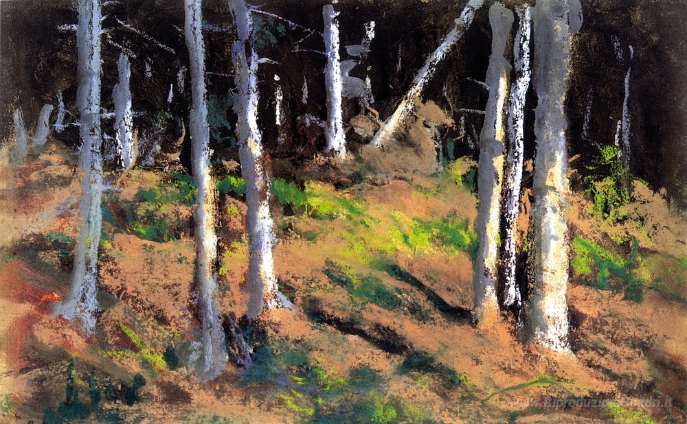 Ti offriamo una riproduzione artigianale su tela dell'opera famosa 'Dove gli alberi stanno morendo' di Robert Henri, dal Museo delle Riproduzioni.