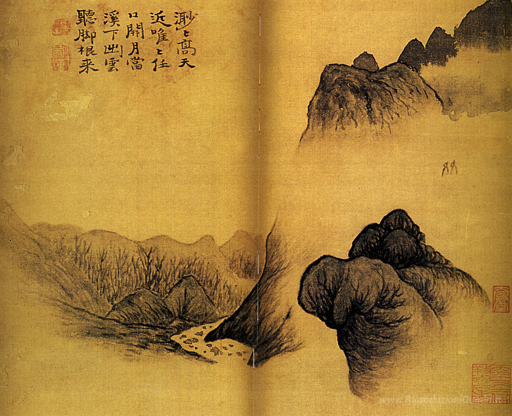 Ti offriamo una riproduzione artigianale su tela dell'opera famosa 'Due amici al chiaro di luna' di Shitao, dal Museo delle Riproduzioni.