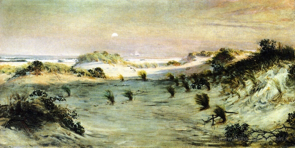 Ti offriamo una riproduzione artigianale su tela dell'opera famosa 'Dune di sabbia al tramonto, Atlantic City' di Henry Ossawa Tanner, dal Museo delle Riproduzioni.