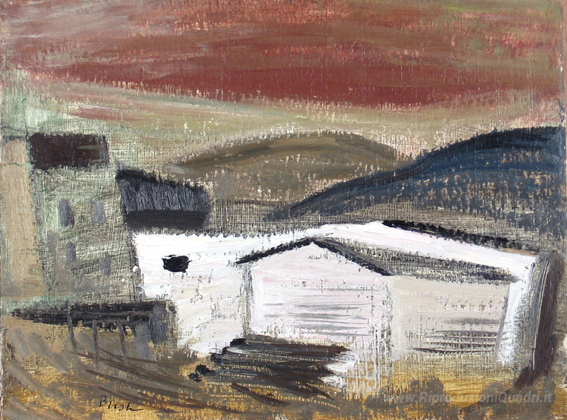 Ti offriamo una riproduzione artigianale su tela dell'opera famosa 'Edifici bianchi' di Jack Bush, dal Museo delle Riproduzioni.