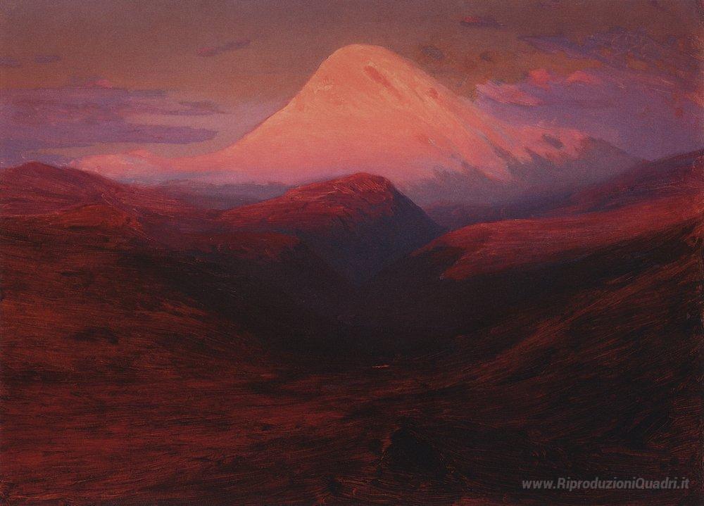 Ti offriamo una riproduzione artigianale su tela dell'opera famosa 'Elbrus in sera' di Arkhip Kuindzhi, dal Museo delle Riproduzioni.