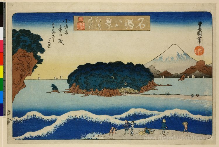 Ti offriamo una riproduzione artigianale su tela dell'opera famosa 'Enoshima Seiran' di Utagawa Toyokuni II, dal Museo delle Riproduzioni.