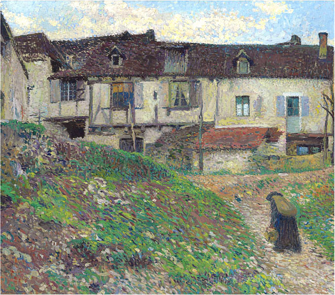 Ti offriamo una riproduzione artigianale su tela dell'opera famosa 'Entrando nel villaggio' di Henri Martin, dal Museo delle Riproduzioni.
