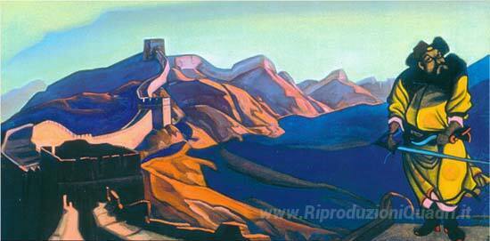 Ti offriamo una riproduzione artigianale su tela dell'opera famosa 'Eroismo della Cina' di Nicholas Roerich, dal Museo delle Riproduzioni.