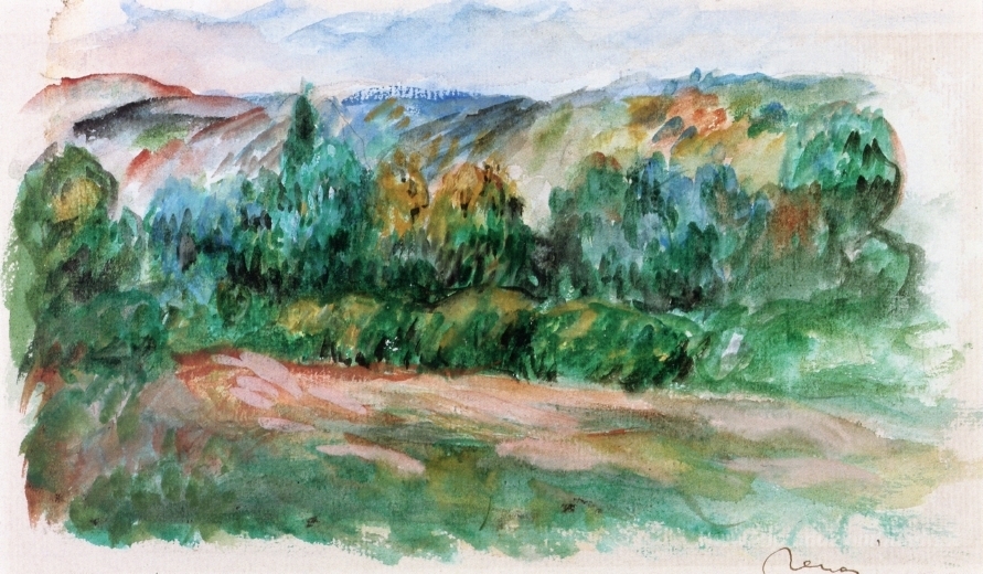 Ti offriamo una riproduzione artigianale su tela dell'opera famosa 'Essoyes Paesaggio' di Pierre-Auguste Renoir, dal Museo delle Riproduzioni.