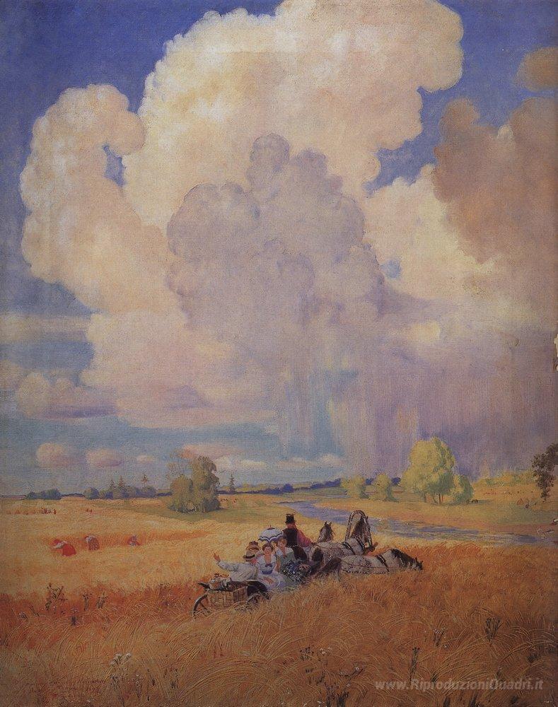Nel mondo vibrante dell’arte a olio, ogni opera racconta una storia unica, e Estate di Boris Kustodiev non fa eccezione. Questo dipinto incarna l'essenza della stagione estiva, grazie alla maestria dell'artista nel catturare la luce e i colori vivaci, tipici delle calde giornate di sole. Kustodiev, noto per il suo stile post-impressionista, utilizza una composizione armoniosa e vivace che invita l'osservatore a immergersi in un'atmosfera di gioia e spensieratezza.